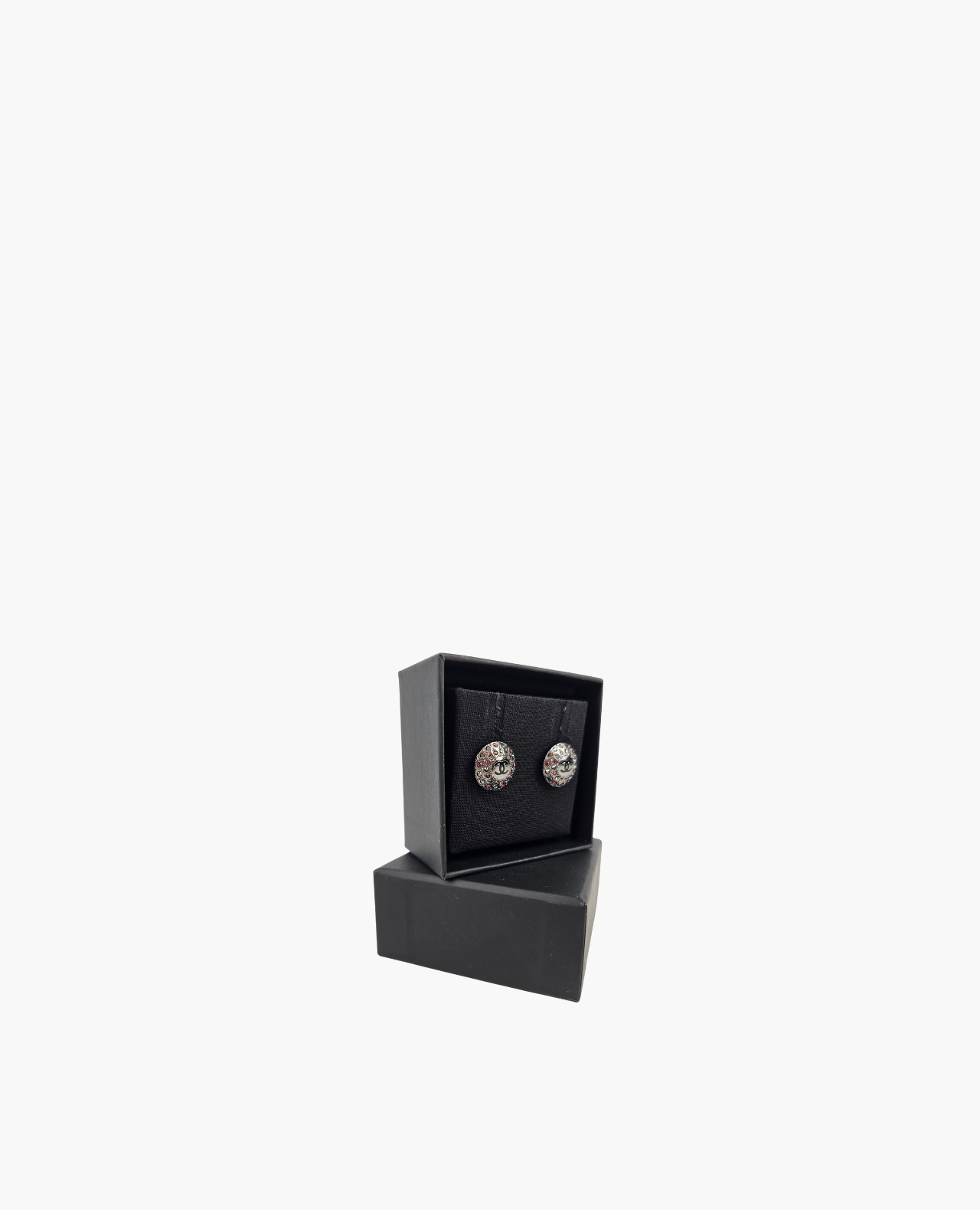 Chanel Earrings Coco Mark Mini Rhinestone Silver Round